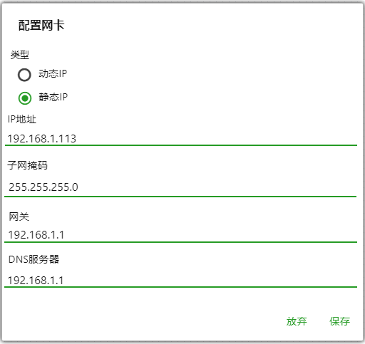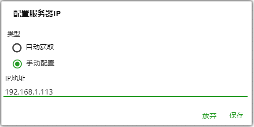 3.在系统设置-网络配置中可以手动修改设备IP和服务器IP。