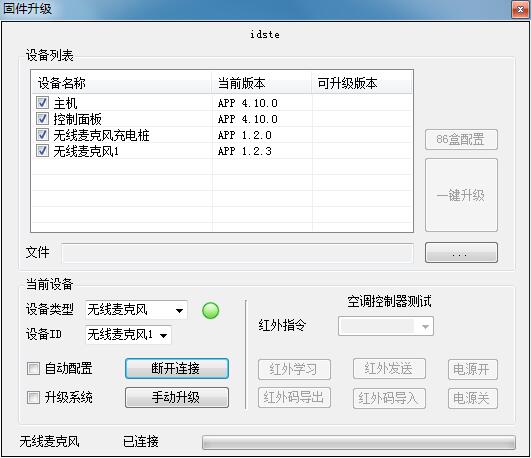 将无线麦克风充电桩的USB线接入中控USB接口,麦克风插入充电桩座子,通过idste服务器端看到无线麦克风充电桩和无线麦克风当前状态。