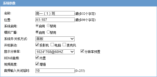 • 系统启用:启用表示系统可正常使用,禁用表示系统本地功能无法使用,但网络广播功能仍可以使用;