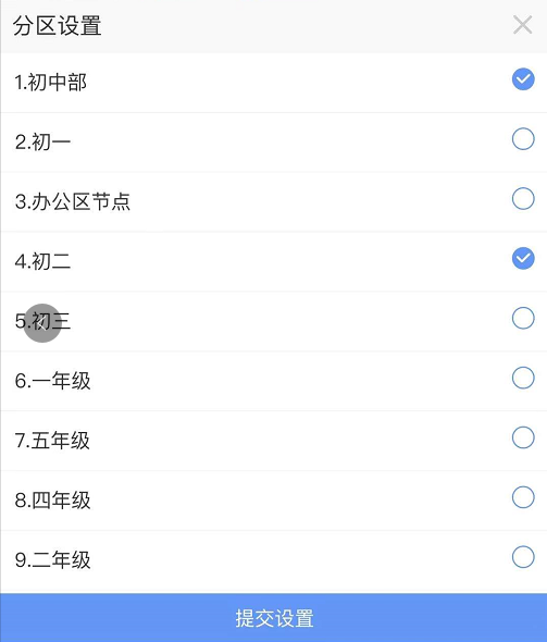 3.分区切换:点击学校的分区名称,可展示学校的分区设置,选择相应分区则进行分区切换