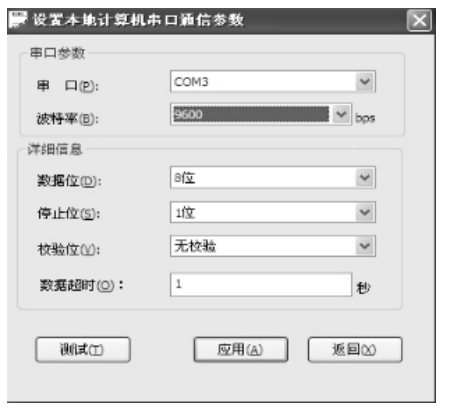 根据机损及选择通信端口,其他设置都为默认,然后点击测试,测试通过后在点击应用。