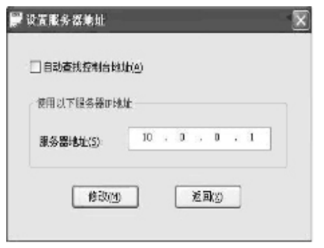 6.点击服务器IP图标,设置服务器IP,如需要跨网段控制,此IP地址必须设定为远程控制软件端的计算机IP地址。如在同网段控制,且设备IP地址是自动获得,此功能设定为自动,如图: