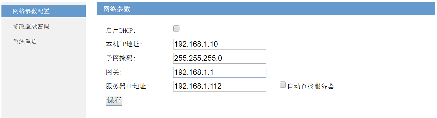 先按住机箱的复位键,然后接通电源,复位后的IP为192.168.1.10\\