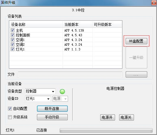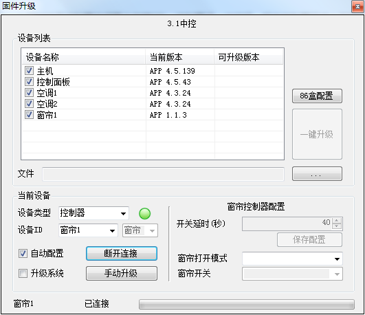 1.通过sniffer工具,在设备管理页面中找到与现场调试终端对应ID号,点击鼠标右键选择固件升级页面,在弹出的界面中,设备类型选择控制器,选择设备ID,将“自动配置”前的复选框打钩。如图所示