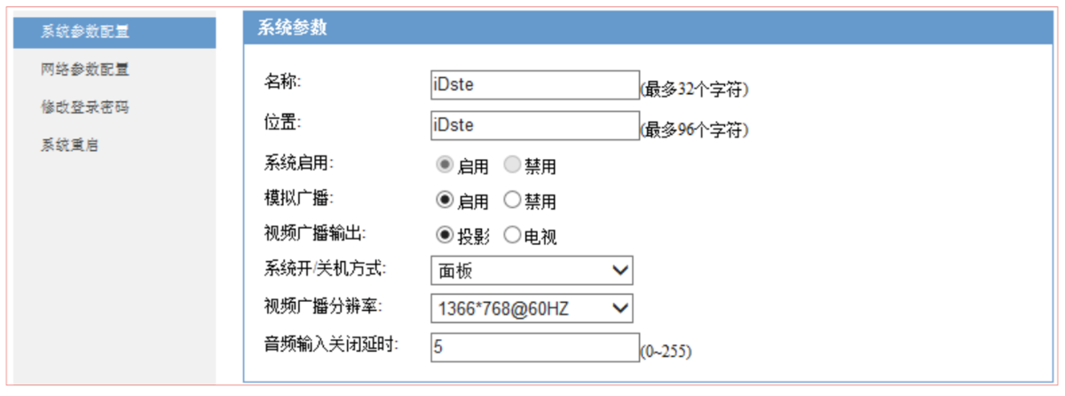 音频输入关闭延时:表示为音频输入信号关闭的延时时间.