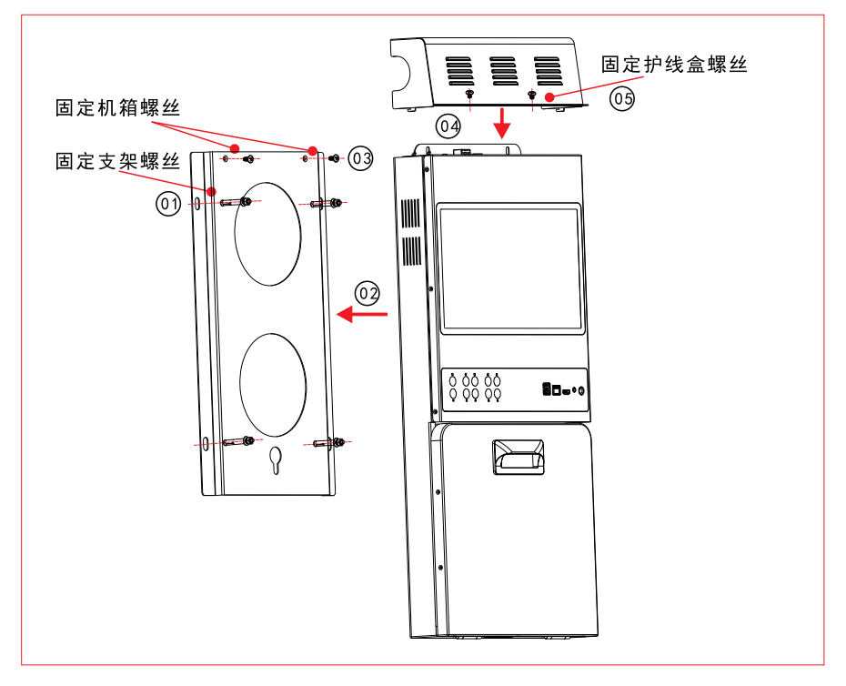 ②、将机箱挂在支架上