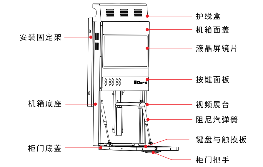 3、打开柜门,请按“柜门”键,柜门锁打开,可拉开柜门(注:柜门键只在电脑开启后有效)。